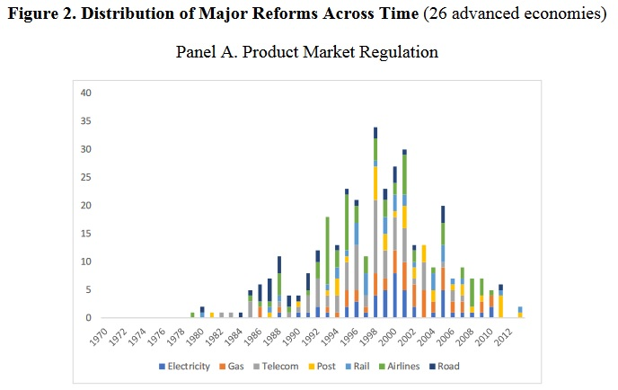A partir de una nueva base de datos sobre las principales reformas de los mercados de trabajo y de productos en los países avanzados, analizamos un amplio conjunto de variables en busca de una correlación sólida con la reforma en cada área. …las reformas estructurales son notoriamente difíciles de aplicar… una de las hipótesis más destacadas planteadas en la bibliografía, a saber, que la crisis induce a la reforma… intentamos minimizar los juicios de valor y el error de medición empleando un conjunto de datos «narrativos» de nueva construcción sobre las principales reformas en cuatro áreas, a saber, la regulación del mercado de productos (PMR) en las industrias de red, la EPL para los trabajadores fijos, la EPL para los trabajadores temporales y los sistemas de prestaciones por desempleo. … Los grandes costes de bienestar de las crisis económicas o financieras pueden desbloquear las medidas de mejora del bienestar que no podrían adoptarse de otro modo debido al conflicto sobre sus consecuencias distributivas.