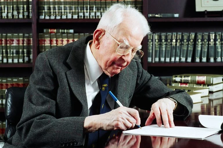 Imagen: Ronald Coase trabajando en 2003 | Crédito de la imagen: Facultad de Derecho de la Universidad de Chicago